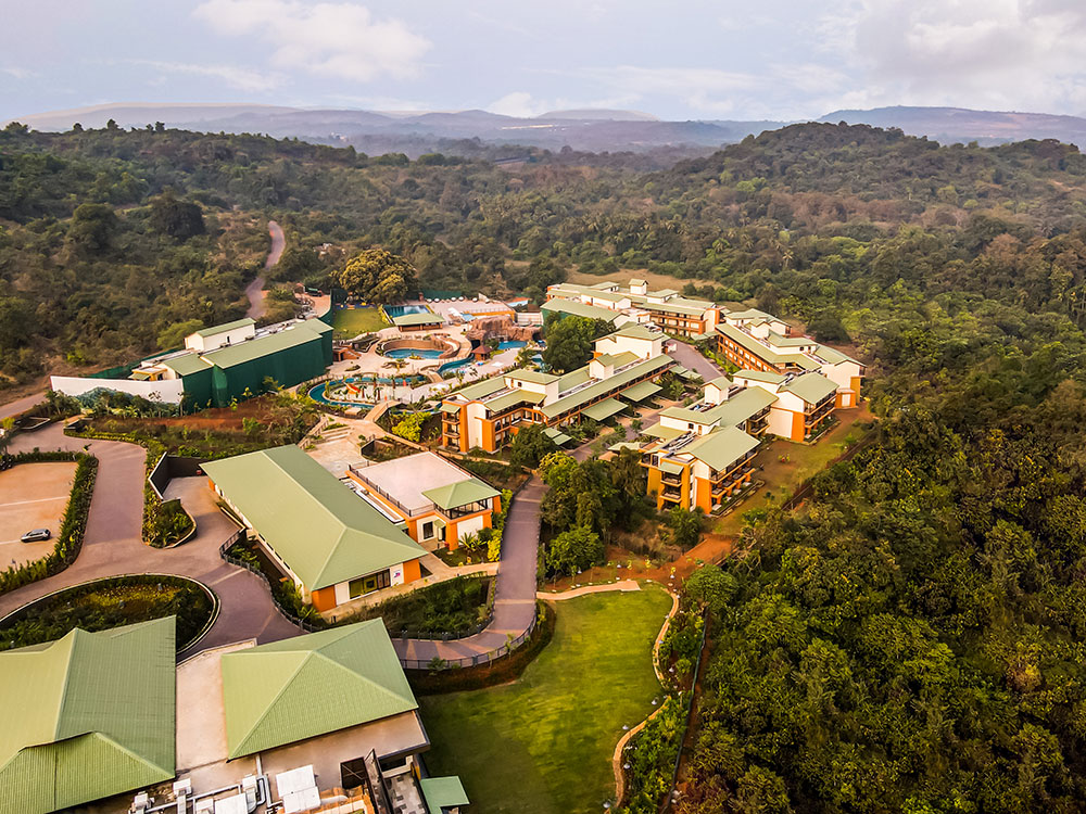 Guests can enjoy a range of in-resort experiences like yoga sessions, candlelight dinners, cook-with-chef workshops, Goan-themed evenings, and a 9D VR theatre. The water themed park with slides, plunge pools, and a waterfall cave is a major highlight for families.